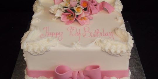 admin2016-09-02T03:34:35-04:0090th Birthday Cake. This is a very classic design with Lambeth piping in royal icing. The cake is covered and decorated in fondant. The crocus flowers on the top are created from gum paste. This ten inch square will serve at least 50 guests and was enjoyed in Atlanta, Georgia.See all of this weeks creations [...]