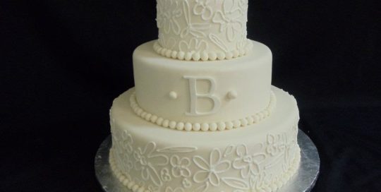 admin2017-04-05T03:45:12-04:00Wedding dress lace inspired wedding cake. This three tier round wedding cake will serve 120 guests. It is covered in ivory fondant and the decor is created in white. The client supplied us with two images that she wanted to be put together. The wedding reception took place in Atlanta, Georgia.See all of this week's [...]