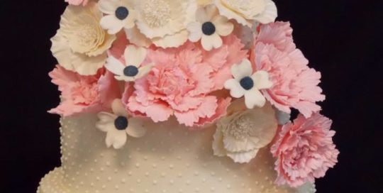 admin2016-09-01T04:57:03-04:00Sugar Calla Lilly Wedding Cake. This four tier fondant covered wedding cake has alternating designs. Two of them have an etched smooth harlequin pattern with pearlized dragees and the other two have pearlized dragees. The hand made sugar calla lillies matched the color swatch the bride supplied to us. This wedding cake was enjoyed at [...]